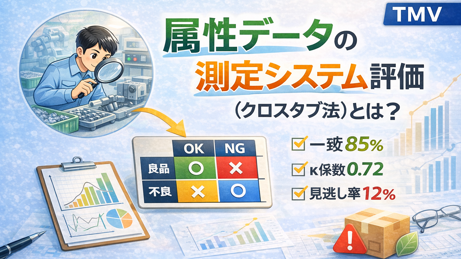 属性データの測定システム評価では、単なる”一致率”だけでは不十分です。