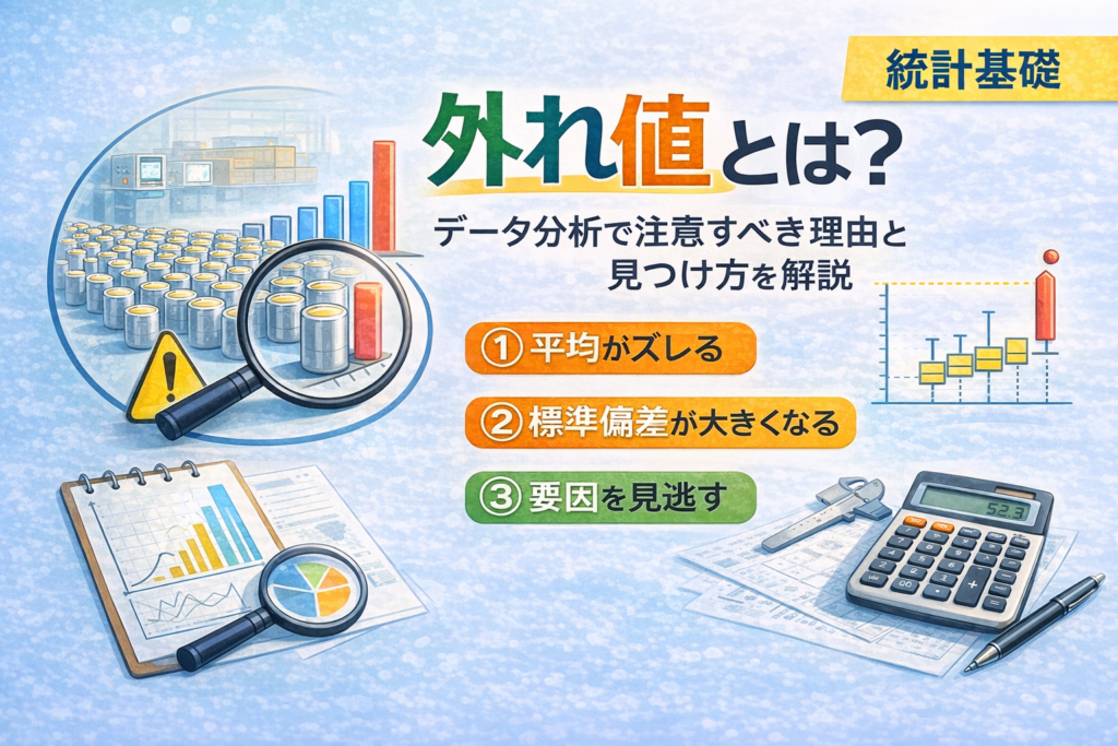 Excelで実践統計解析, 人気記事Excelで実践Cpk|自工程の安定性は十分か?工程能力の算出方法 statlab_manager / 2026年2月24日 はじめに 製造現場では、こんな場面に直面