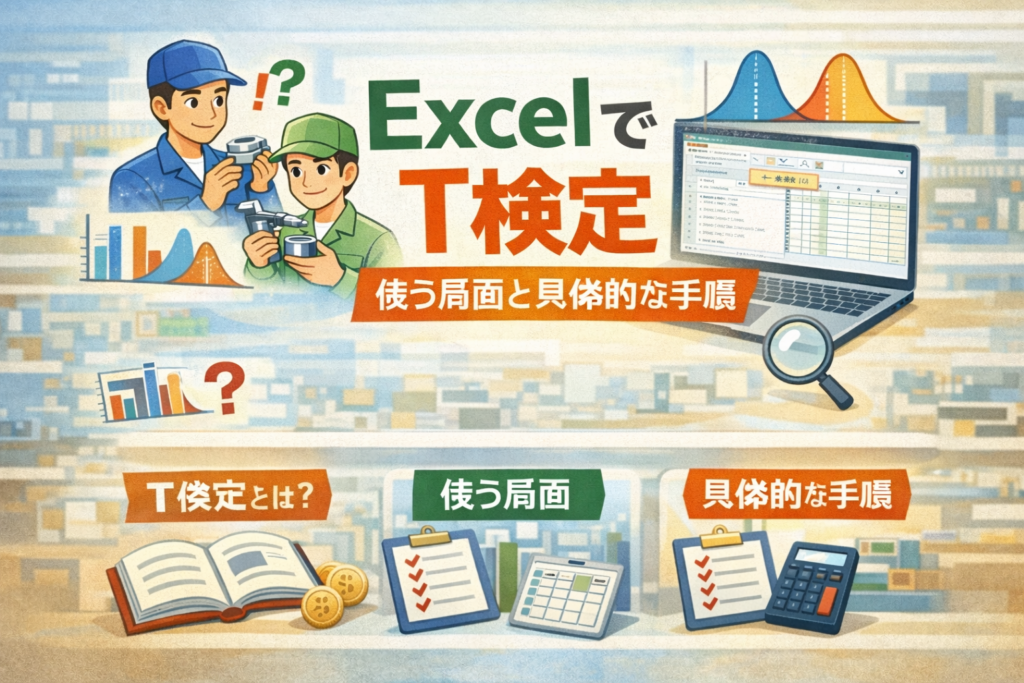 Excelで実践統計解析, 人気記事ExcelでF検定を実践|ばらつき(分散)を比較する方法【初心者向け】 statlab_manager / 2026年2月20日 はじめに 製造現場や品質管理の場面で、こ