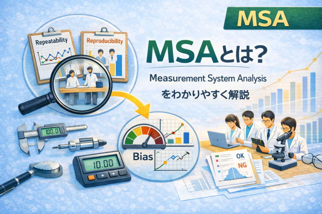 TMV(テスト メソッド バリデーション), 統計解析の基礎MSAとは?測定システム解析をわかりやすく解説【Gauge R&R・TMVとの関係】 statlab_manager / 2026年3月18日 製造業や品質管理では、日々さまざまな測定