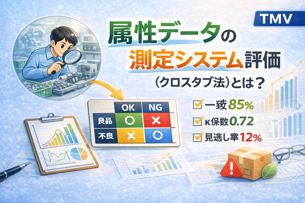 Excelで実践統計解析, TMV(テスト メソッド バリデーション)属性データの測定システム評価(クロスタブ法)とは? statlab_manager / 2026年3月22日 ① 属性データのMSAとは何か 前回の記