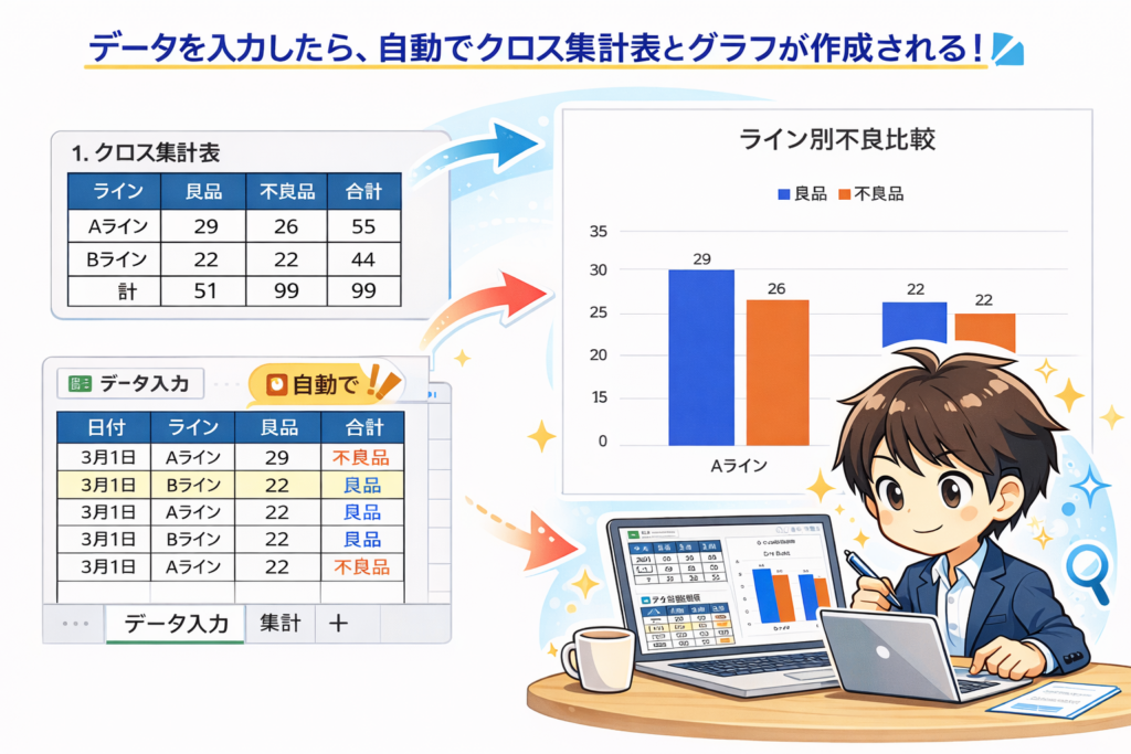 👉データを入力した後は、クロス集計表に自動で結果が出力されます