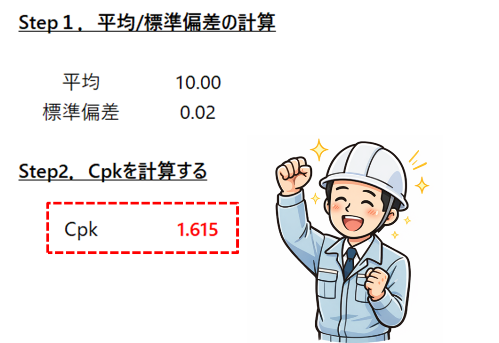 これで工程能力指数Cpkが算出できます。