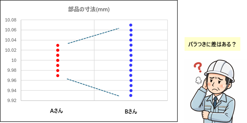 ・AさんとBさんの加工精度は同程度か?