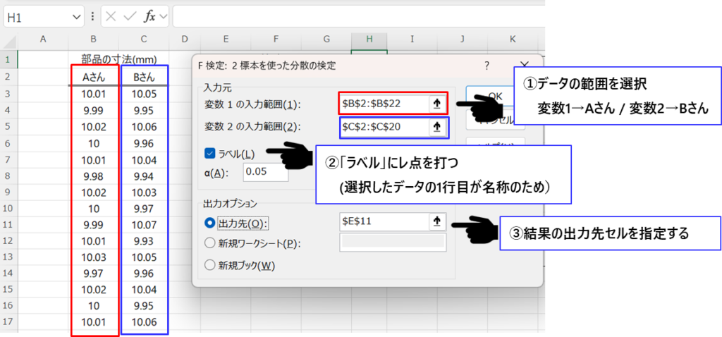 ここから、「Aさんの分散は、Bさんの分散の何倍か?」を知ることができます