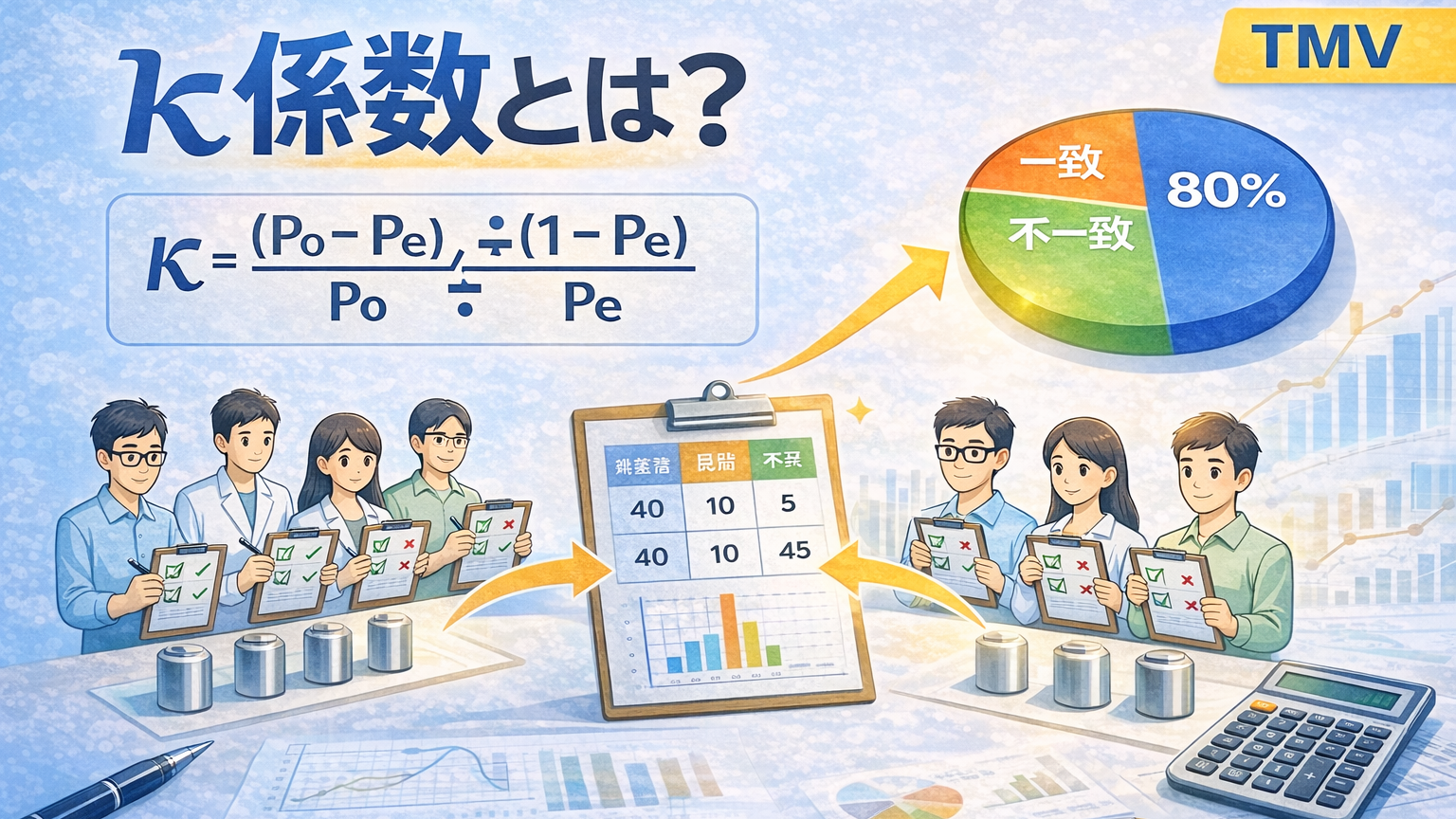 属性MSAの指標のひとつ。測定者間の一致度を比較するk係数についてわかりやすく解説!