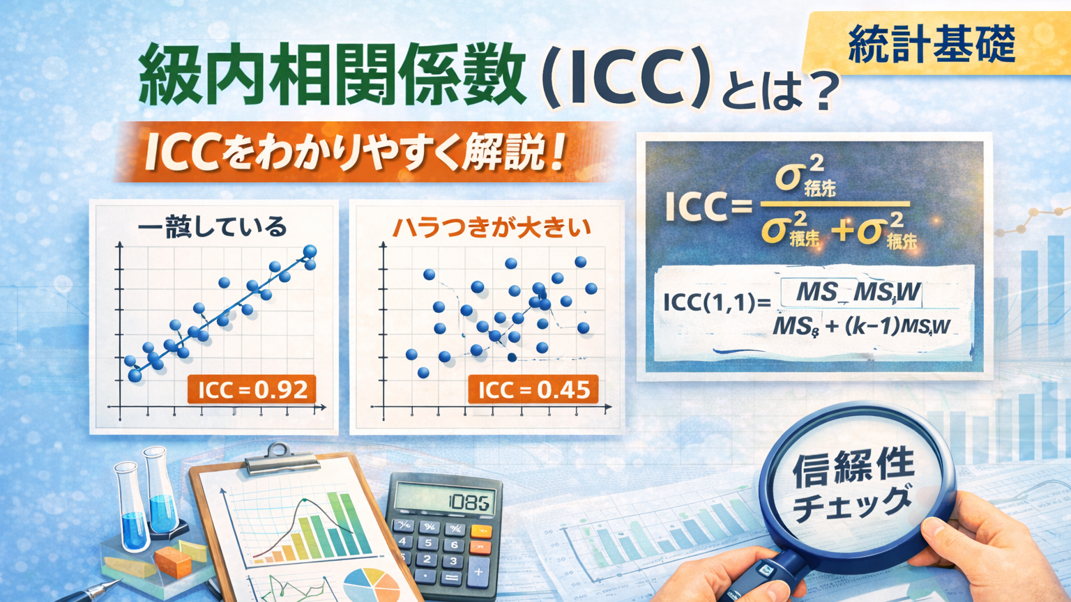 級内相関係数(ICC)は、測定や評価の信頼性を確認するための重要な指標です。