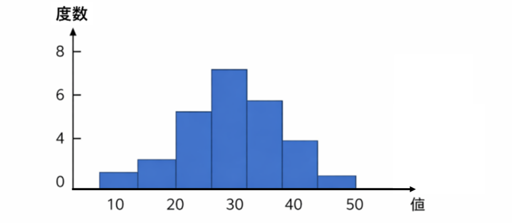 データ分析では、まず「ヒストグラム」「度数分布表」などでデータの分布を確認し、