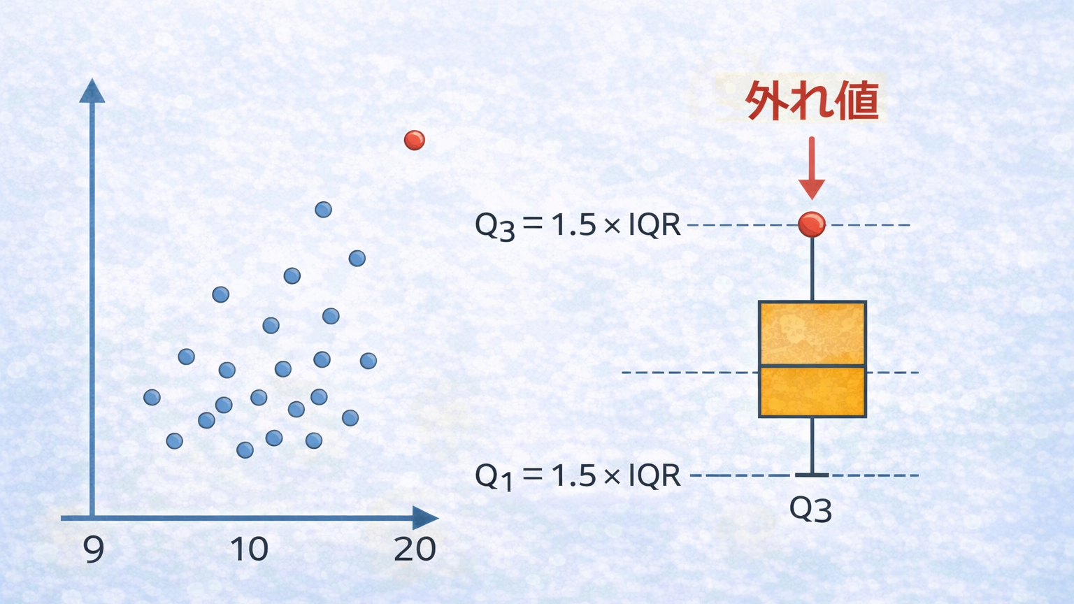 外れ値は必ずしも「間違ったデータ」とは限りませんが、統計解析の結果に大きく影響する可能性があります。