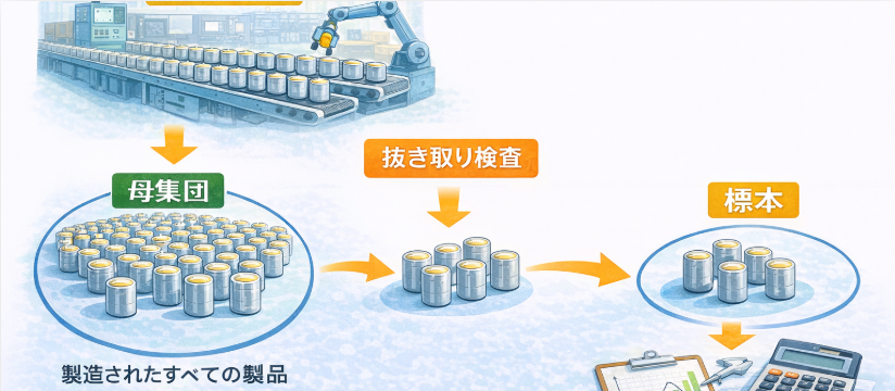 標本データを分析することで「工程が安定しているか」「不良が発生していないか」などを母集団全体を対象として判断します。