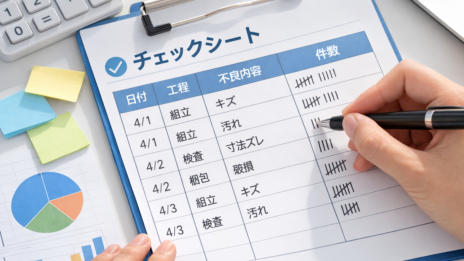 | チェックシート | データを漏れなく集める | 不良件数や発生状況を記録したいとき | 事実を整理して集計しやすくできる |
