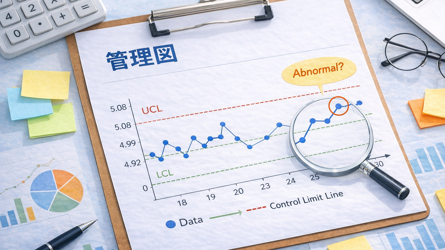 データを時間順に並べ、中心線や管理限界と比較することで、それが通常のばらつきなのか、それとも異常の兆候なのかを判断します。寸法の推移、不良率の変化、欠点数の推移、工程ごとの安定性確認などに使われます。