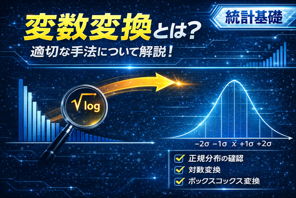 この記事では、変数変換とは何か、どのような場面で使うのか、代表的な変換方法、Excelでの実践方法までわかりやすく解説します。