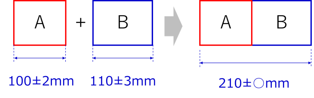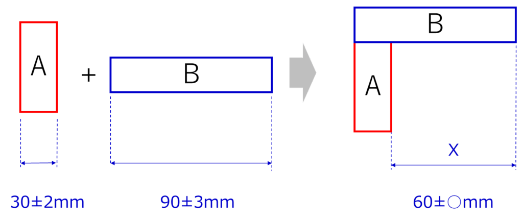 部品Aと部品Bの寸法を足し合わせて、部品Cの全長を管理するケースを考えます。